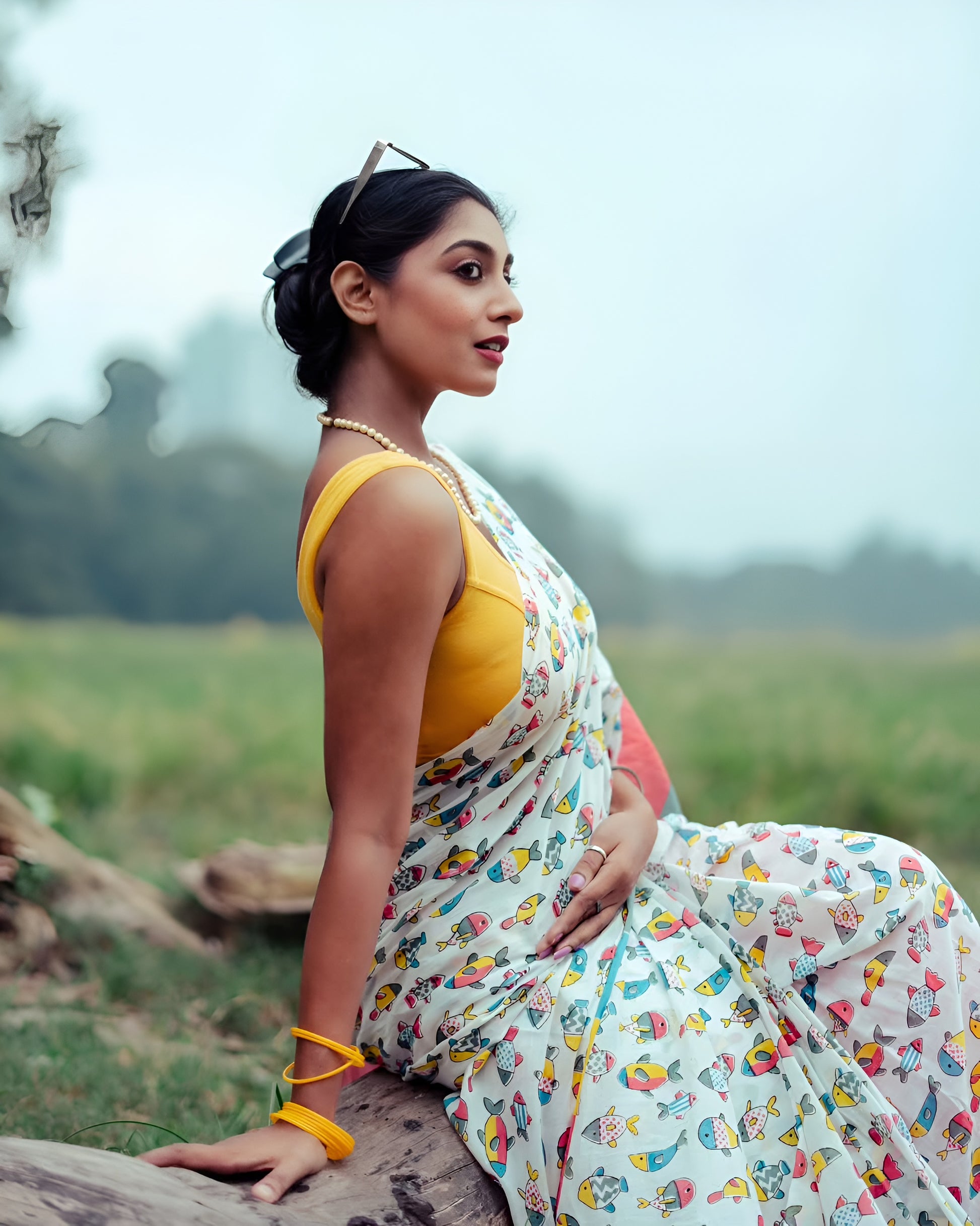 Lightweight Linen Cotton Digital Print Saree with Soft Plain Linen Blouse