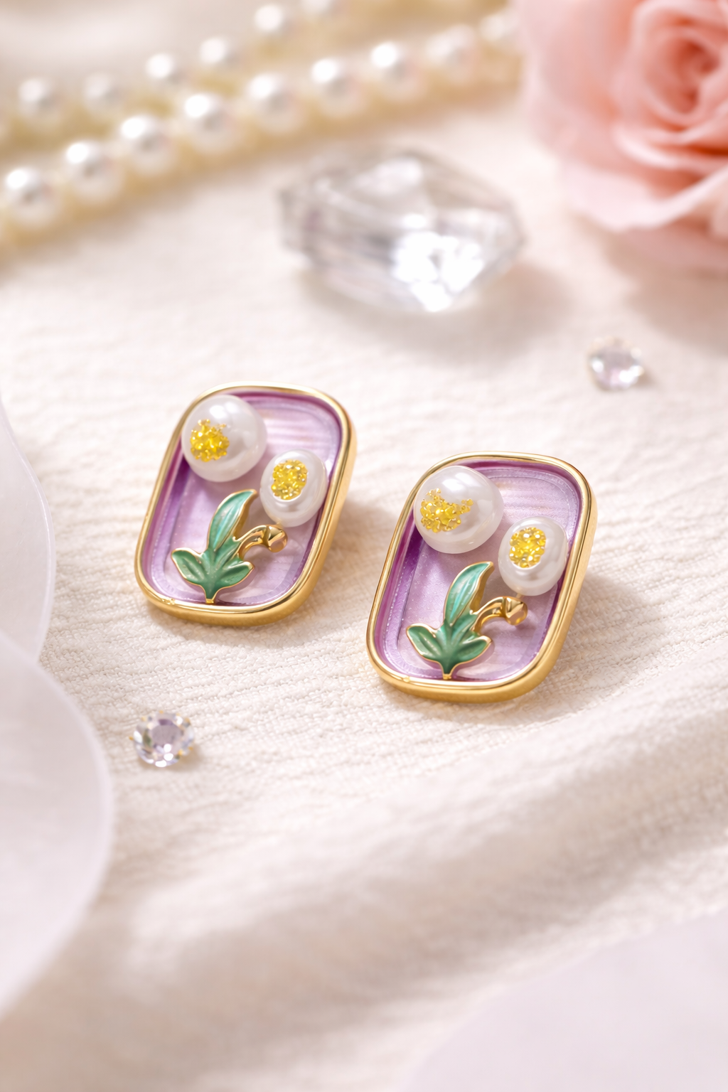 Lavender Floral Enamel Stud Earrings